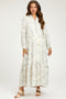Gray Floral Tassel Tiered Long Sleeve Maxi Dress