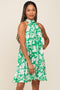 A solid button down maternity mini dress featuring puff sleeves and snap button front closure.