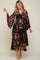 A floral print chiffon maternity dress featuring a wrap front with an adjustable tie, a v-neckline, 3/4 length bell sleeves, a hi-low hem and double lining.