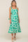 Green Floral Linen Square Neck Open Back Maternity Midi Dress