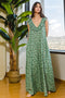 Green Floral Ruffle Accent Wide Leg Maternity Jumpsuit