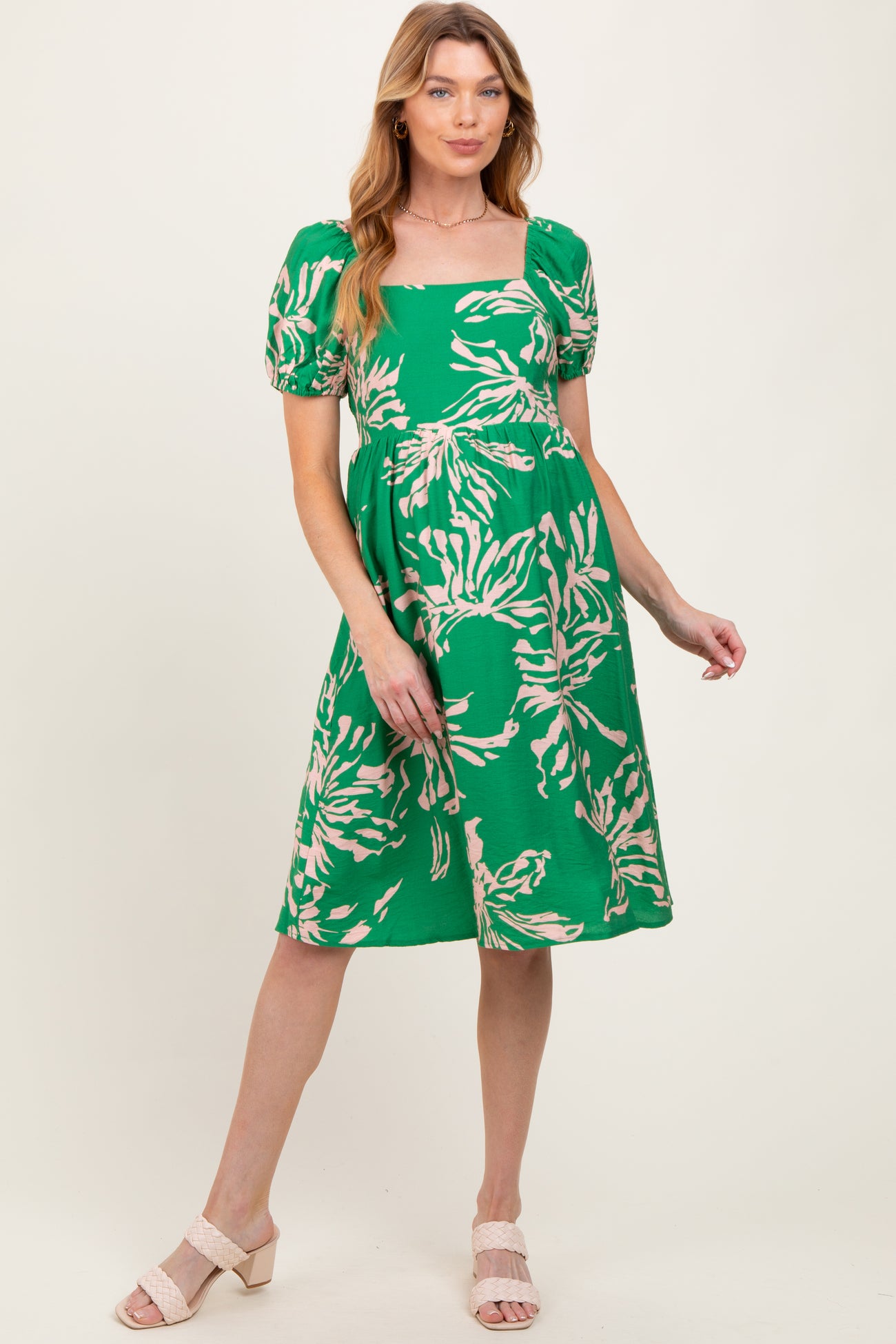Green Floral Square Neck Short Sleeve Maternity Dress