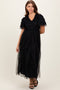Green Front Seam V-Neck Side Slit Maternity Sweater
