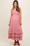 Green Gingham Shoulder Tie Maternity Dress