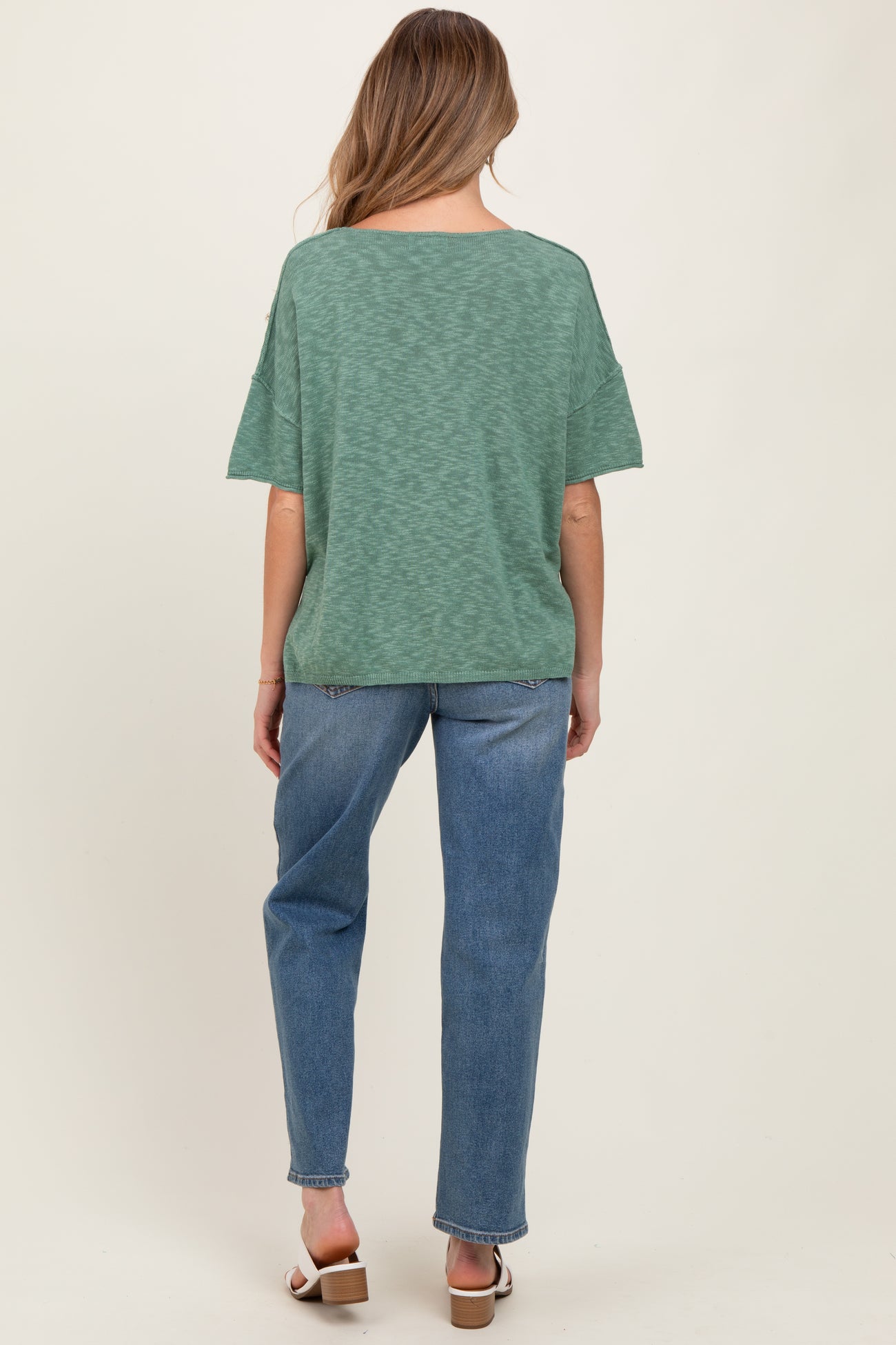 Green Knit Drop Shoulder Short Sleeve Maternity Top