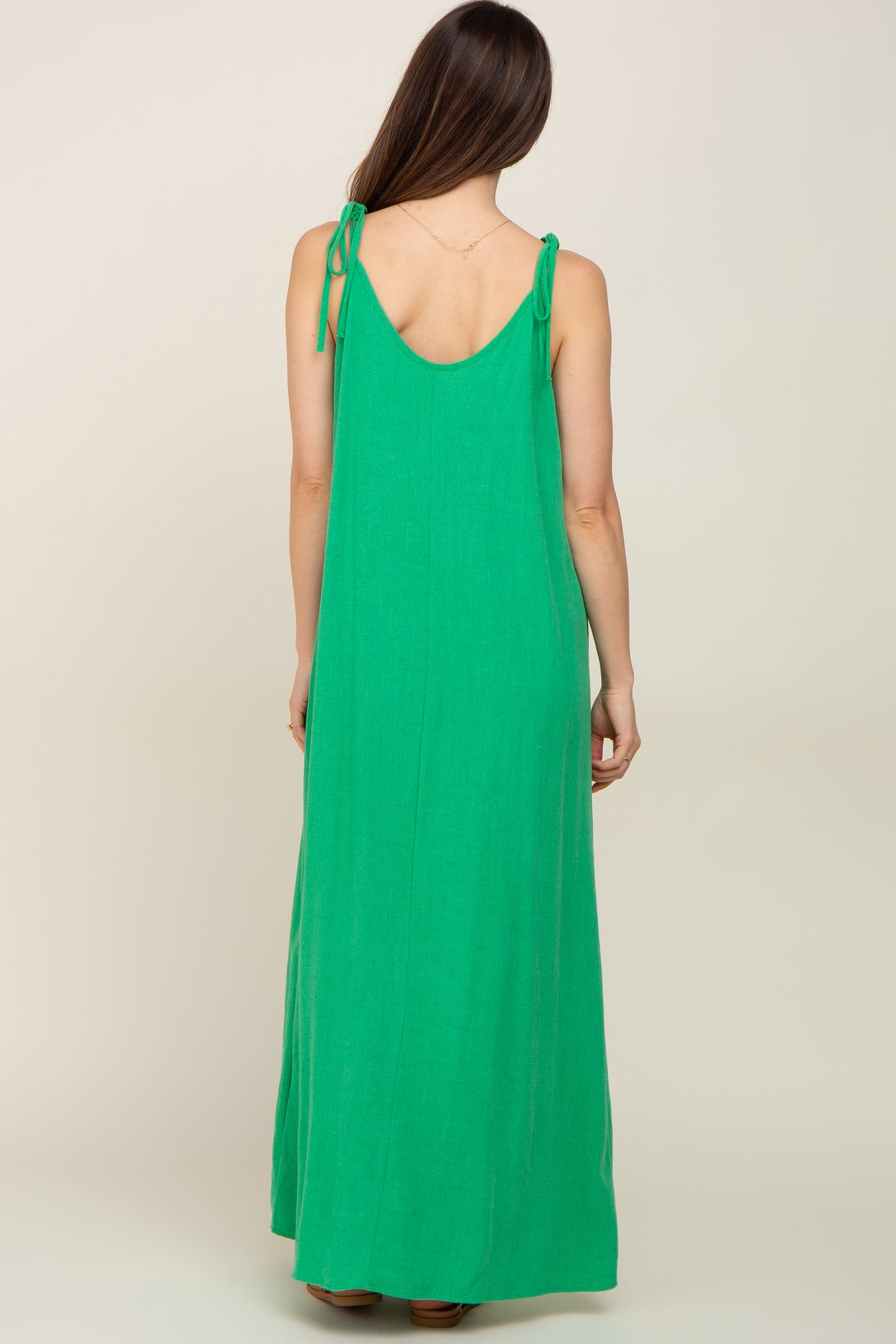 Green Linen V-Neck Tie Strap Maternity Maxi Dress
