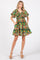 Green Multi-Color Tropical Print Ruffle Hem Dress