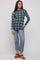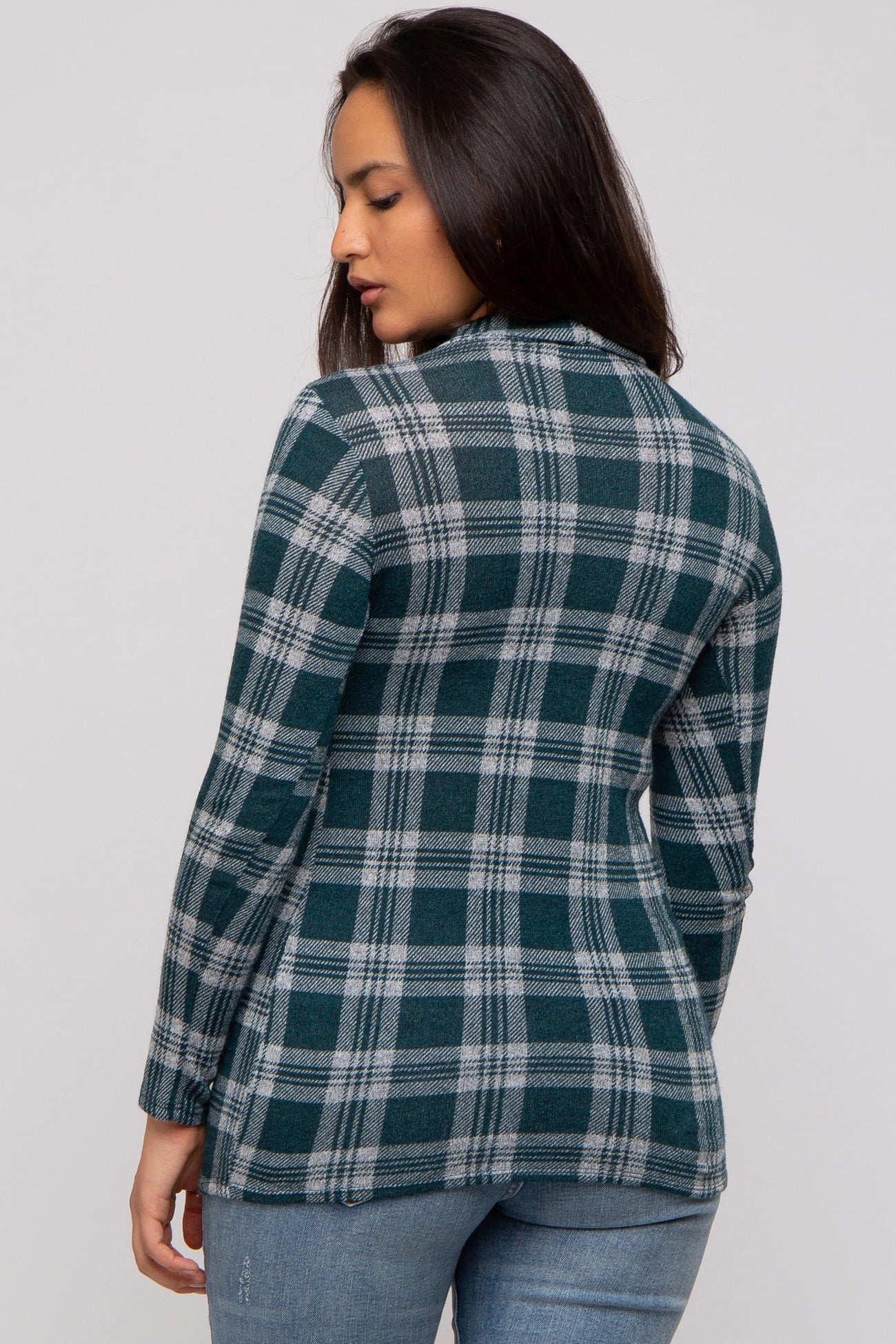 Green Plaid Mock Neck Brushed Long Sleeve Top