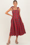 Green Plaid Shoulder Tie Scallop Hem Maternity Midi Dress