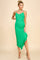 Green Ruched Ruffle Detail Sleeveless Midi Dress