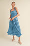 Green Square Neck Ribbed Sleeveless Maternity Midi Dress