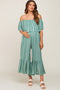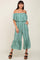 A striped jumpsuit featuring a fold-over off shoulder neckline, side pockets and wide legs.