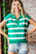 Green Striped Split Collar Knit Top