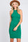 Green Textured Knit Halter Fitted Dress
