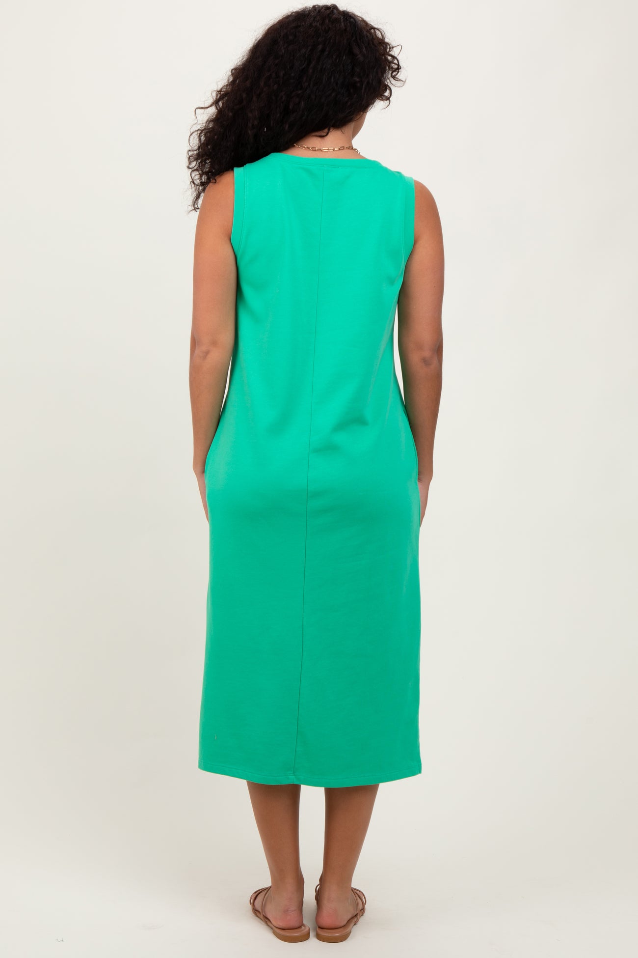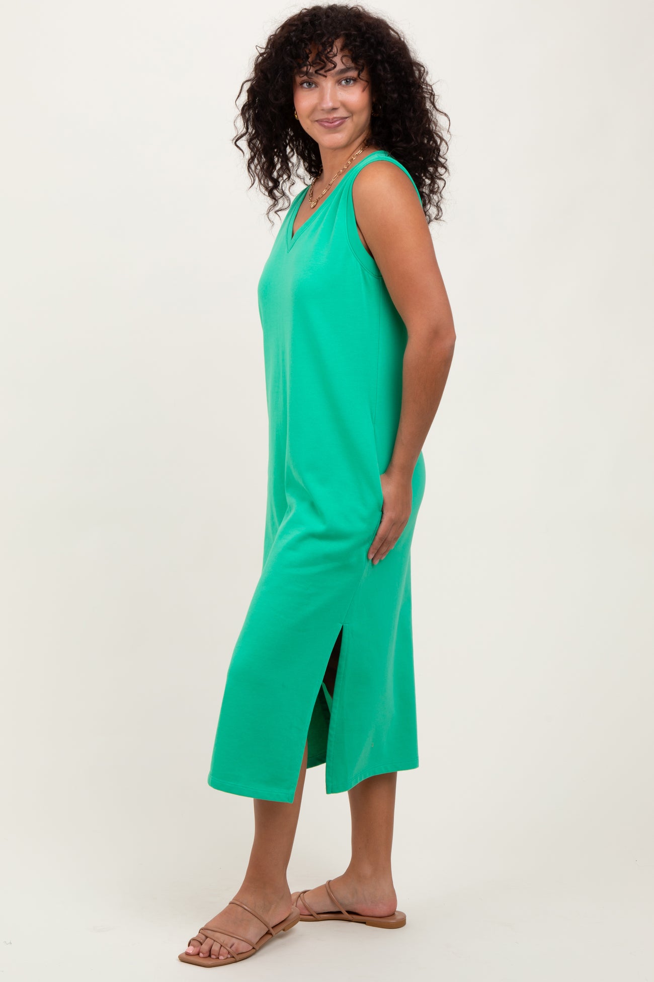 Green V-Neck Sleeveless Side Slit Midi Dress
