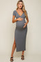 Grey Basic Ribbed Side Slit Midi Dress