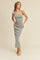 A ribbed midi skirt with an elastic waistband, and a side slit.