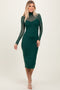 Elevate your wardrobe with this Grey Knit Bow Detail Sleeve Midi Sweater Dress. Crafted from cozy ribbed knit fabric, this dress offers a flattering, body-skimming silhouette that hits just below the knee. The long sleeves feature delicate white trim and charming bow accents at the cuffs, adding a feminine and elegant touch. Perfect for both work and weekend outings, this dress pairs beautifully with heels or ankle boots for a chic look. Stay warm and stylish all season long with this versatile, must-have midi sweater dress. Available in classic grey for timeless appeal.