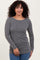 Grey Ribbed Scoop Neck Long Sleeve Top