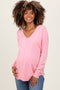 Heather Grey Basic V-Neck Long Sleeve Brushed Knit Maternity Top