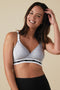 A colorblock maternity/nursing bra. Wire free. Adjustable straps.