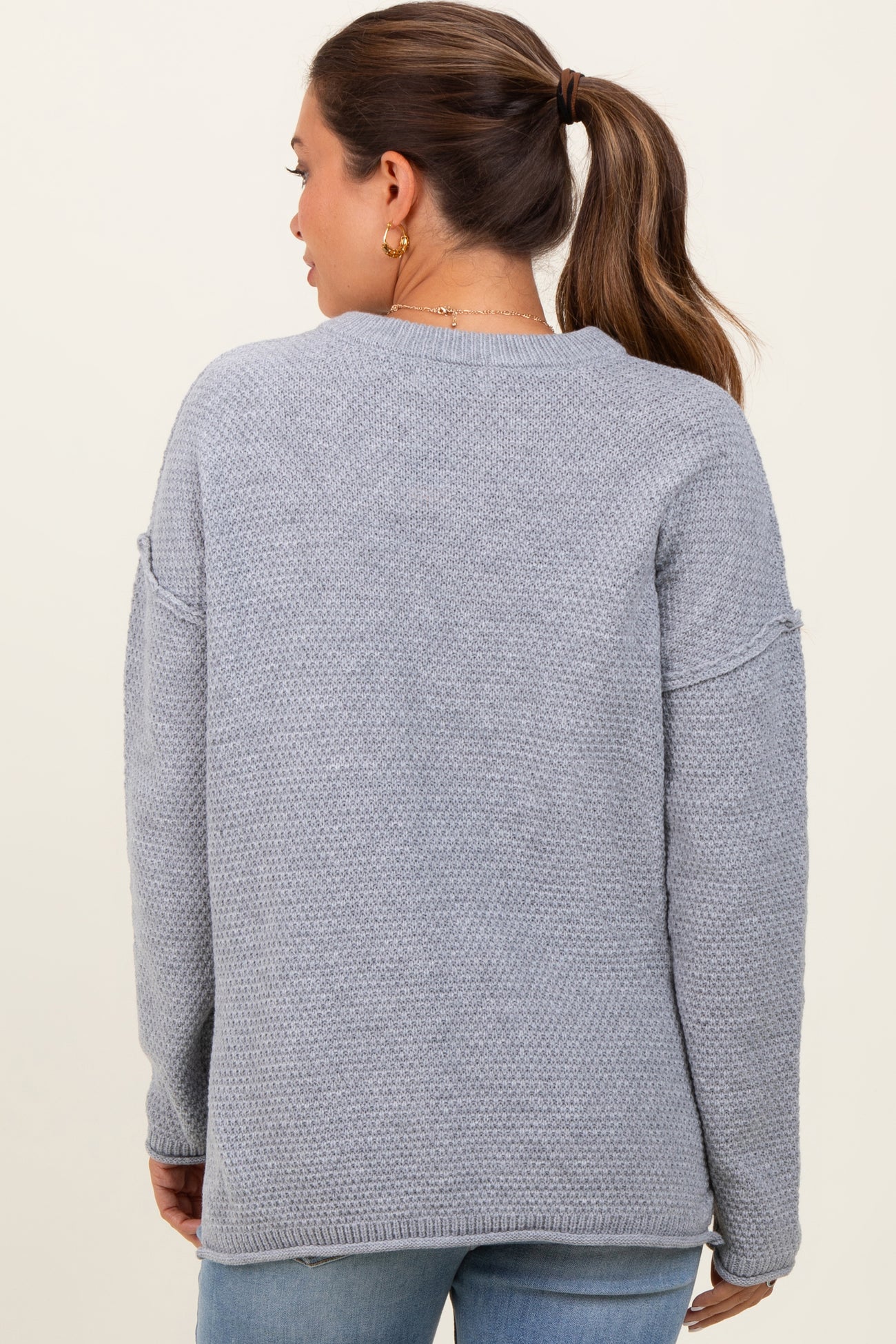 Heather Grey Diamond Knit Button Detail Maternity Sweater