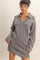 Stay cozy and chic with our Heather Grey Long Sleeve Polo Sweater Dress. Crafted from a soft knit fabric, this dress offers warmth and comfort without compromising style. Featuring a relaxed fit, a classic polo collar, and a flattering V-neckline, it’s perfect for layering or wearing on its own. The long sleeves with ribbed cuffs add a snug finishing touch, while the heather grey shade brings versatile, understated elegance to your wardrobe. Whether you’re dressing it up with boots or keeping it casual with sneakers, this sweater dress is your go-to for effortless, modern comfort.