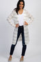 A solid hued maternity top featuring a ribbed texture, long sleeves, a curved hem, and a rounded neckline.