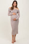 Heather Grey Off Shoulder Long Sleeve Maternity Maxi Dress