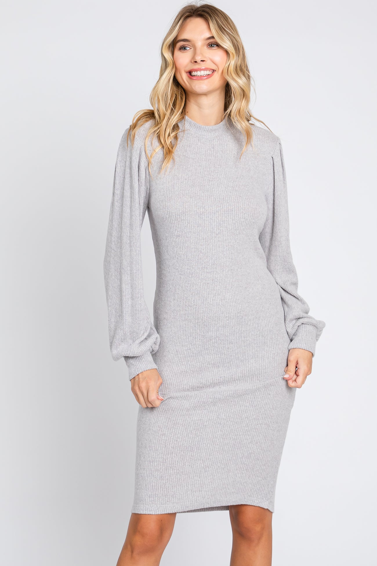 Heather Grey Ribbed Long Sleeve Mock Neck Dress