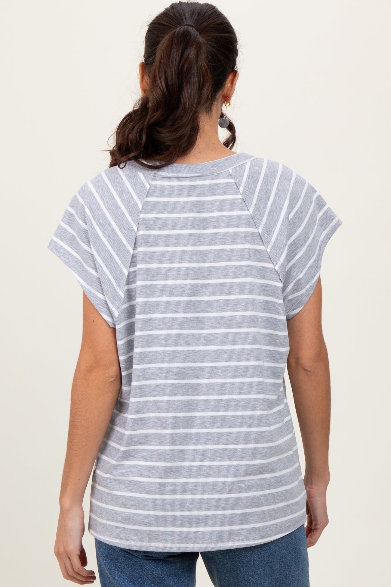 Heather Grey Stripe Ribbed Short Sleeve Tunic Top