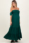 Hunter Green Smocked Ruffle Off Shoulder Tiered Maxi Dress