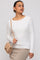 A basic top featuring long raglan sleeves and a rounded neckline. Rolled accents along the neckline, sleeves, and bottom hem.