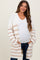 Ivory Beige Knit Striped Long Maternity Cardigan