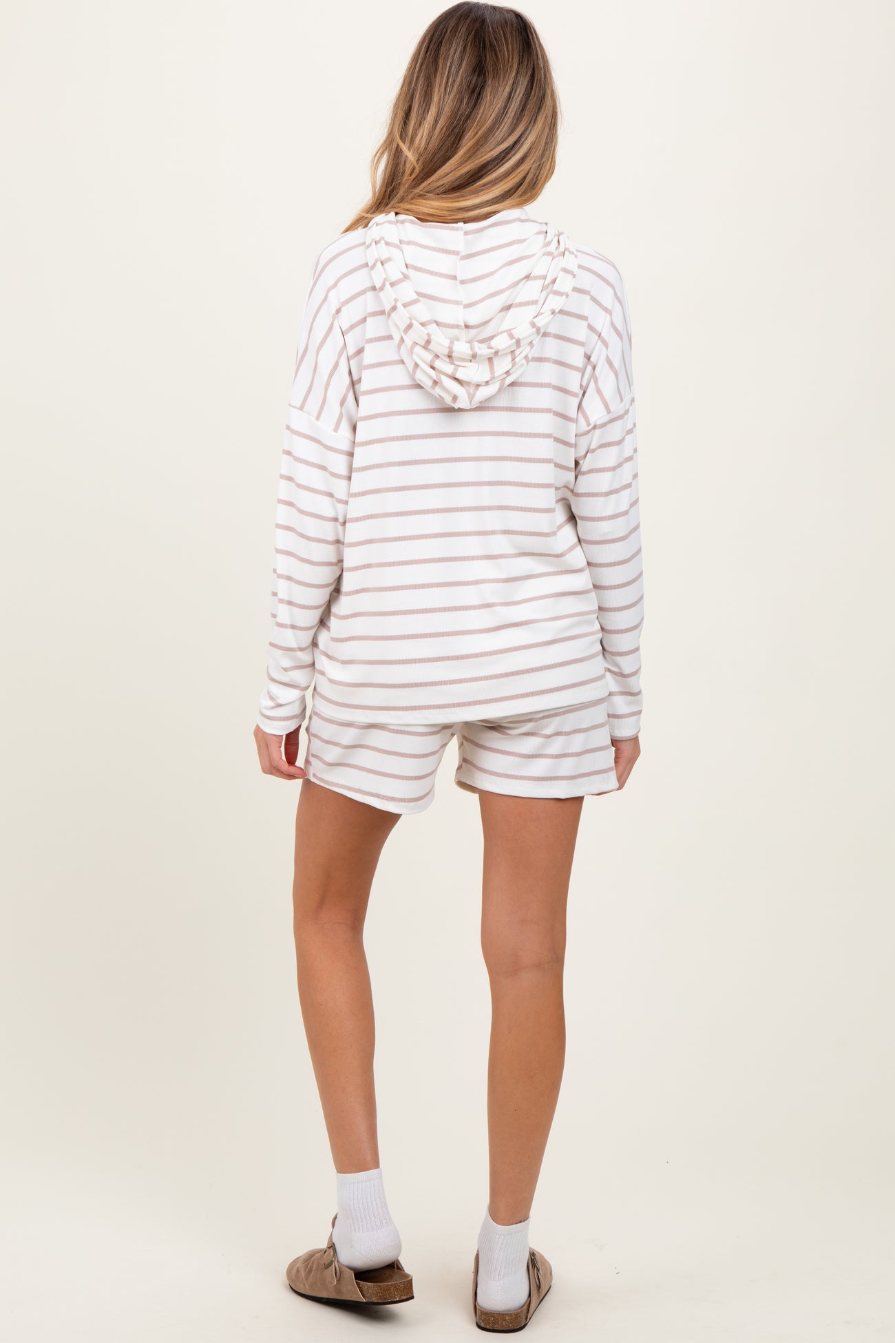 Ivory Cozy Striped Ribbed Two-Piece Maternity Lounge Set