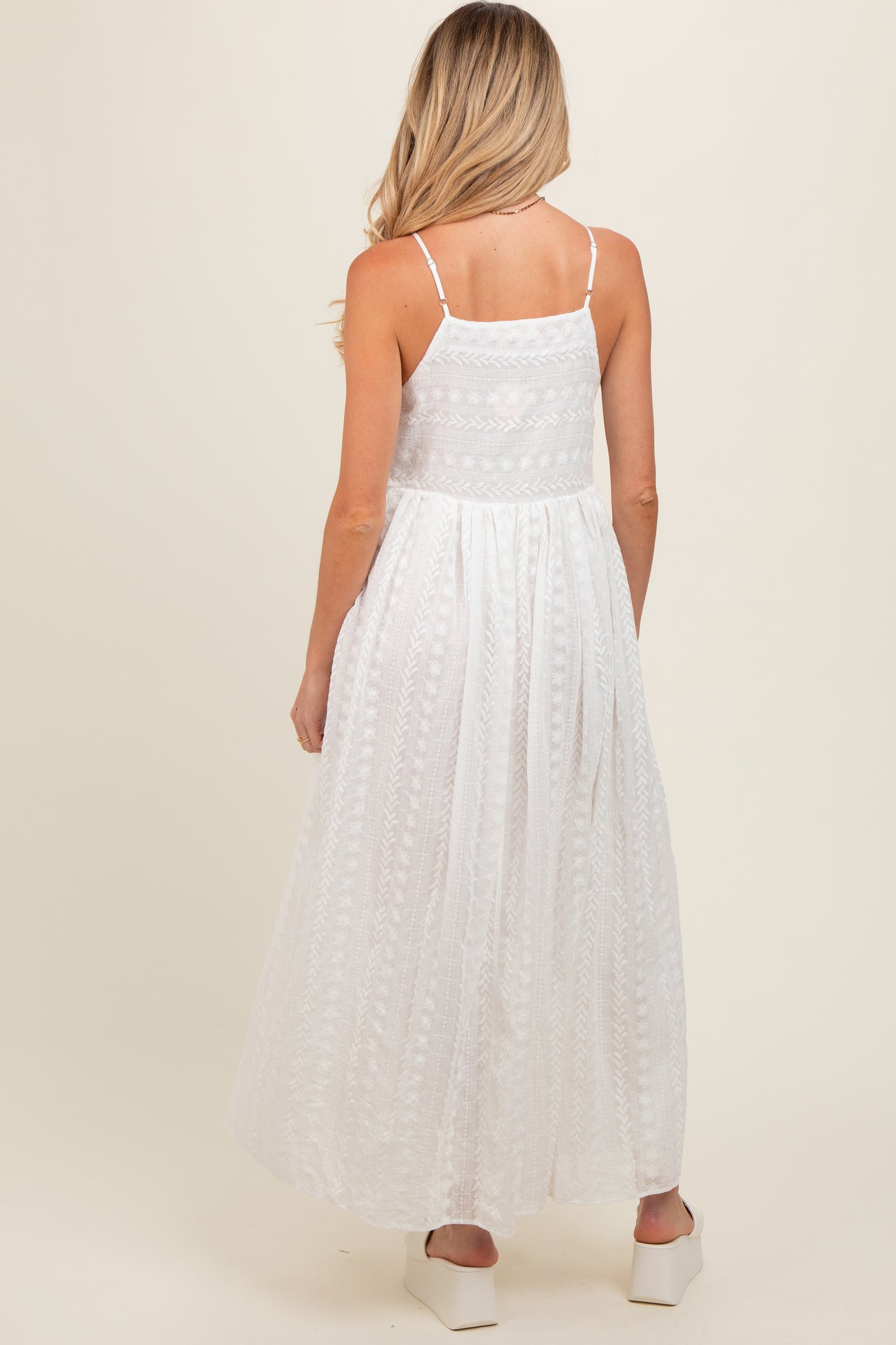 Ivory Embroidered Tassel Tie Maternity Maxi Dress