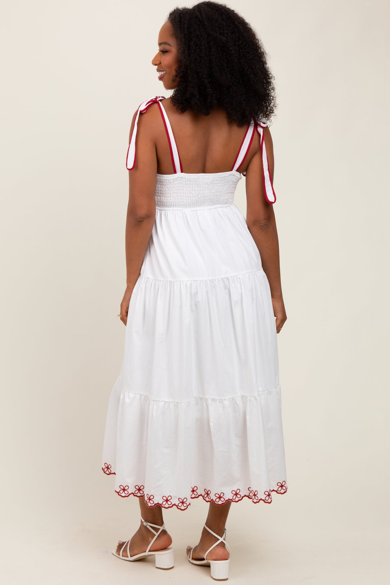 Ivory Embroidered Tiered Midi Dress