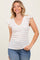 Ivory/Mocha Stripe Ribbed Ruffle Sleeve V-Neck Top