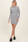 Ivory Striped Mock Neck Long Sleeve Fitted Dress