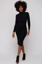 A solid ribbed maxi dress featuring a back slit, long sleeves and a v-neckline.
