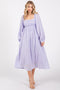 Lavender Criss Cross Front Square Neck Long Sleeve Maternity Midi Dress
