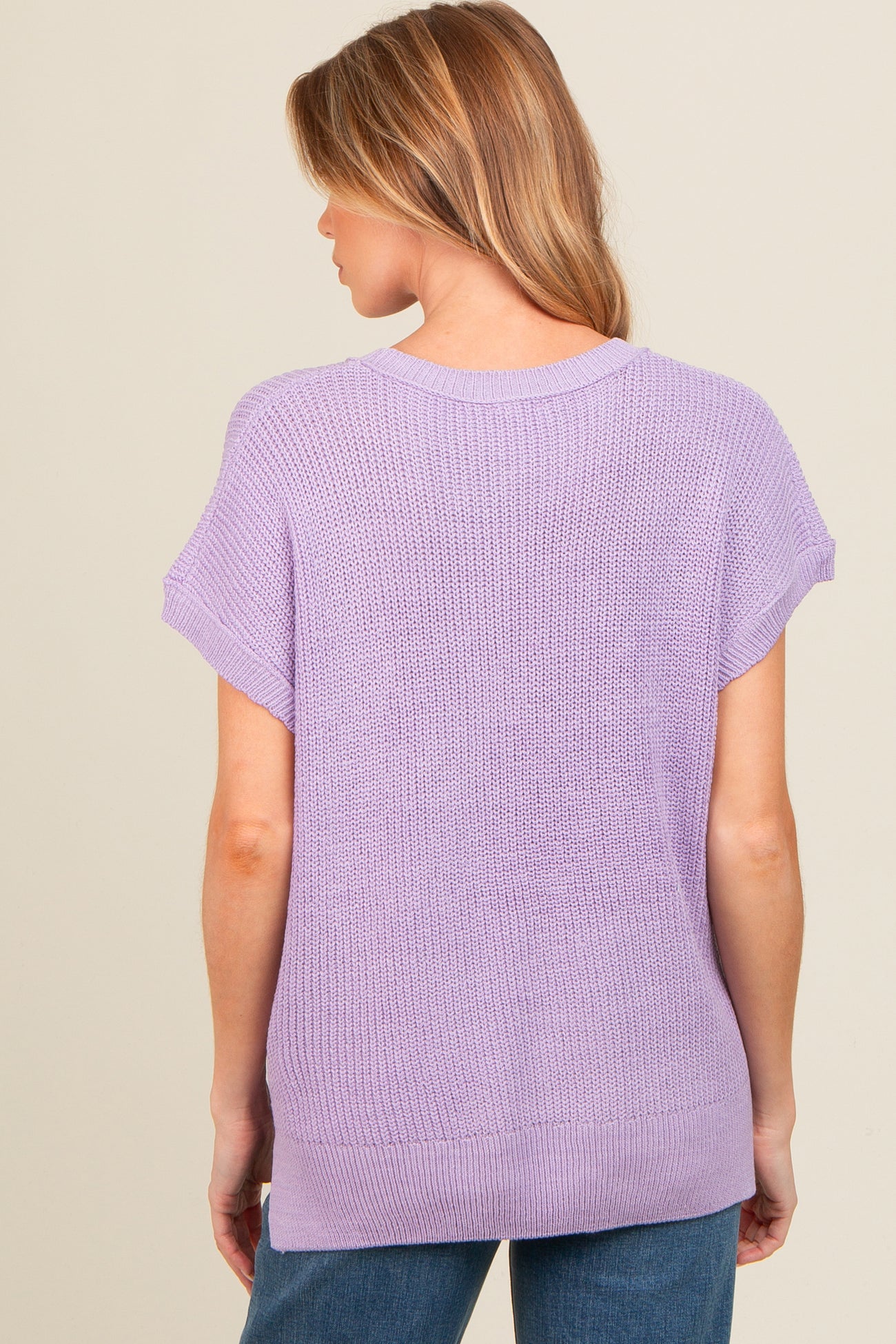 Lavender Dolman Short Sleeve Side Slit Maternity Sweater Top