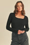 A soft rib knit top featuring long sleeves and a rounded neckline.