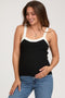 A solid ribbed maternity dress with a round neckline and ruffle sleeves.