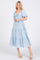 Light Blue Cinched Front Tie Puff Sleeve Midi Dress
