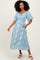 Light Blue Floral Embroidered Puff Sleeve Midi Dress