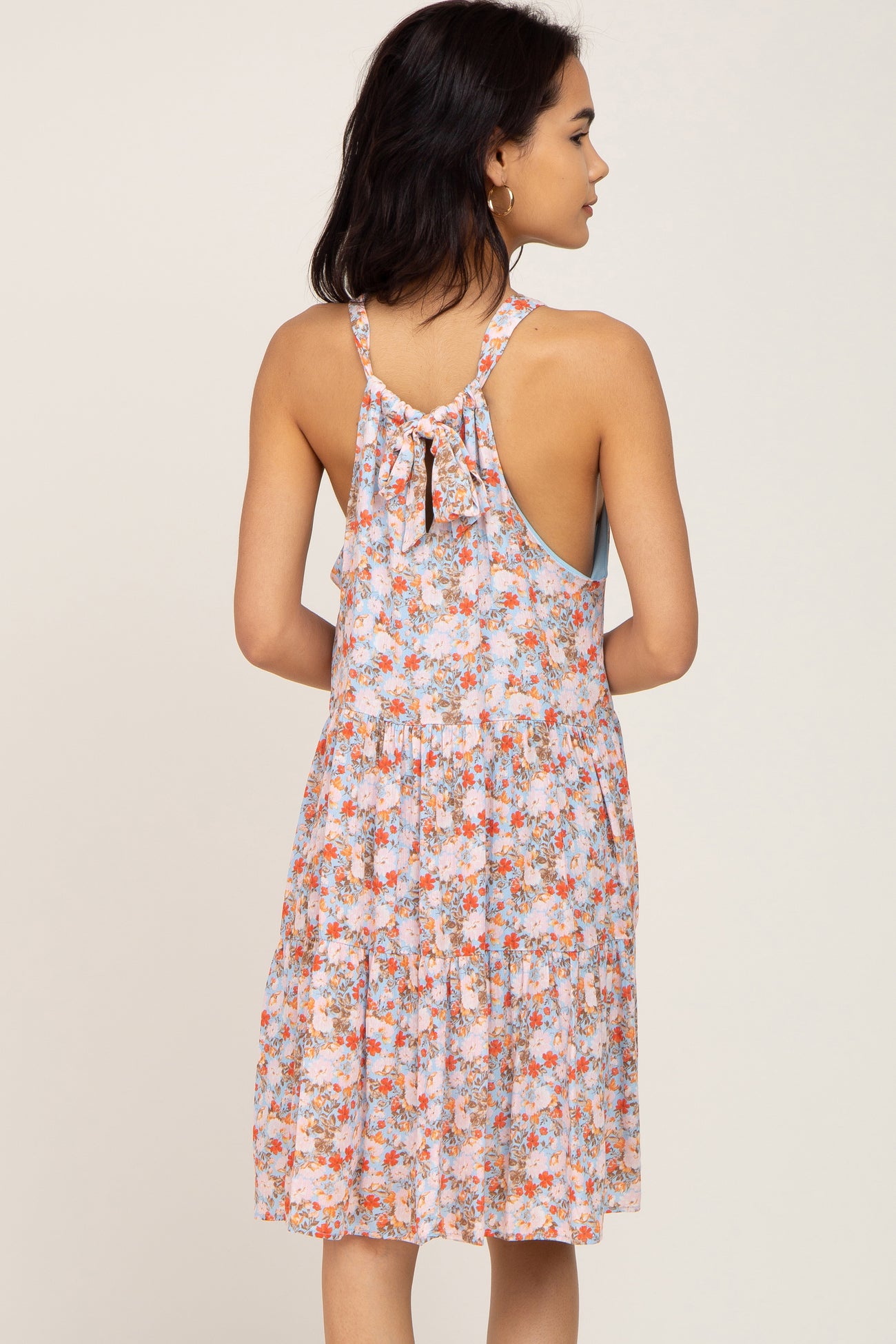 Light Blue Floral Halter Tiered Dress