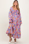 Light Blue Floral Puff Sleeve Maternity Tiered Maxi Dress