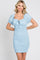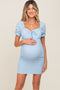 Light Blue Off-Shoulder Smocked Front Tie Fitted Dress
