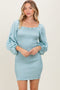 Light Blue Satin Smocked Bubble Sleeve Maternity Mini Dress